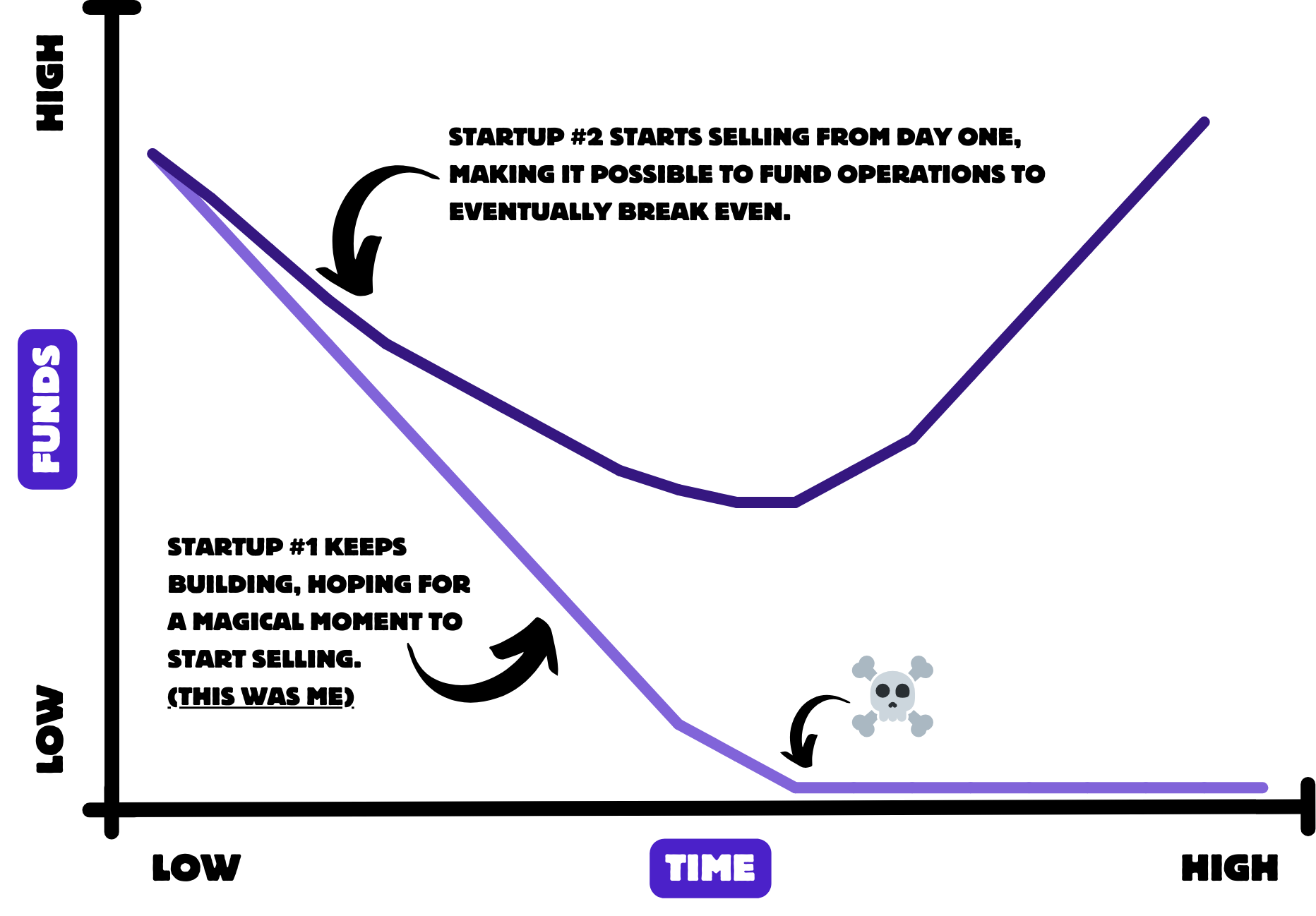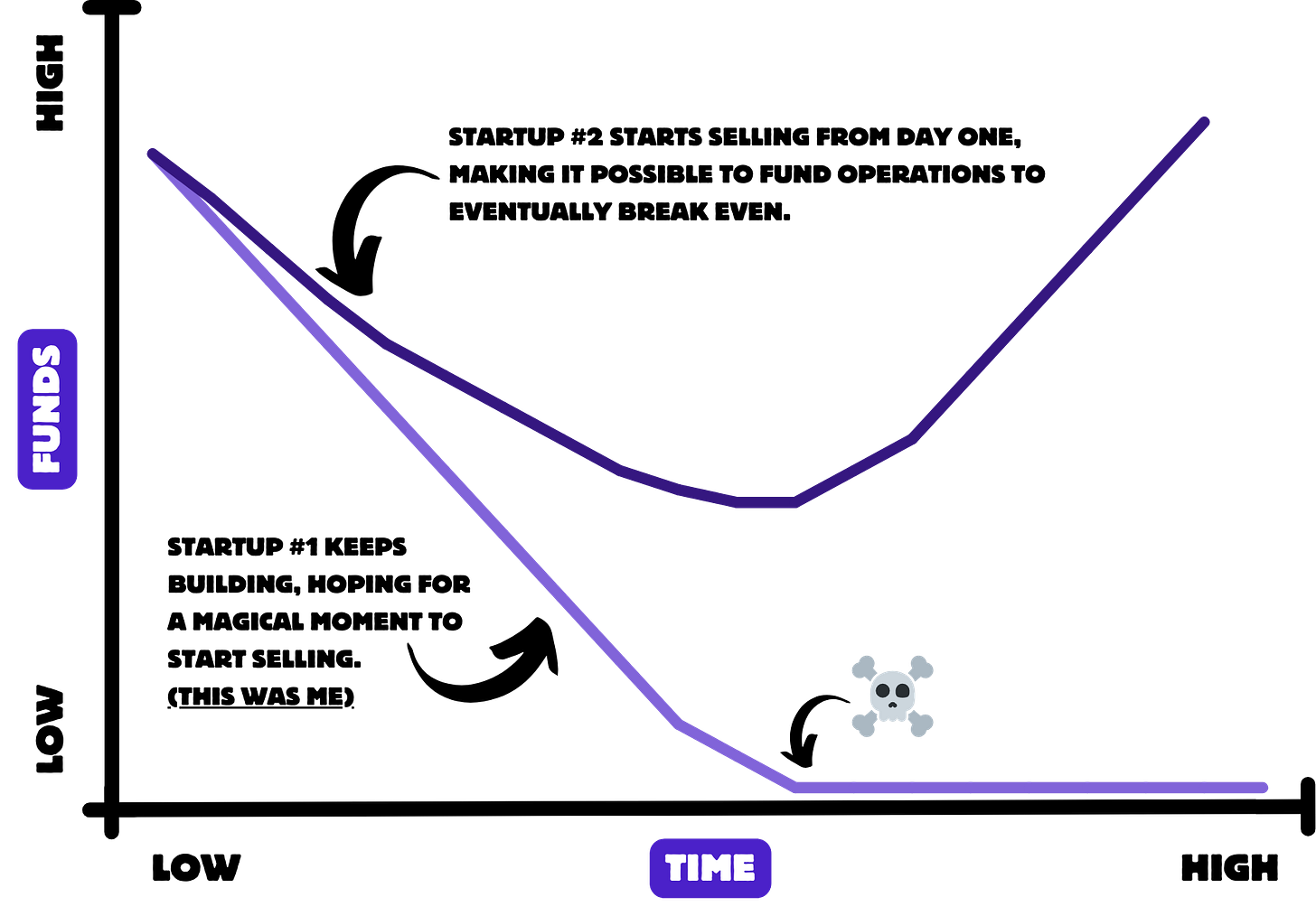 Survive the first months by generating revenue from day one. Understand your spending, get scrappy, and do whatever it takes to start making sales immediately while you build out your full product and go-to-market strategy. Money is not optional!